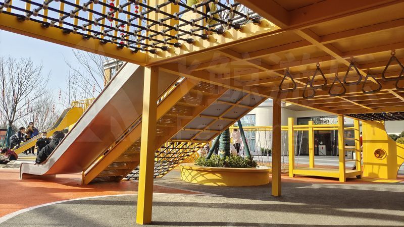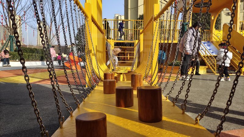 到达松鼠城堡需要一番冒险,小心穿过勇气之桥,到达松鼠城堡。山西爬网、踩盘、荡桥、眺望平台……一个个承载着特定的游戏和功能的平台,鼓励儿童在嬉戏和休息之中产生社交互动,玩乐中收获纯真勇敢协作与友情。