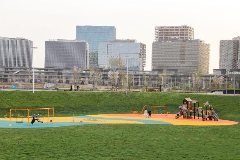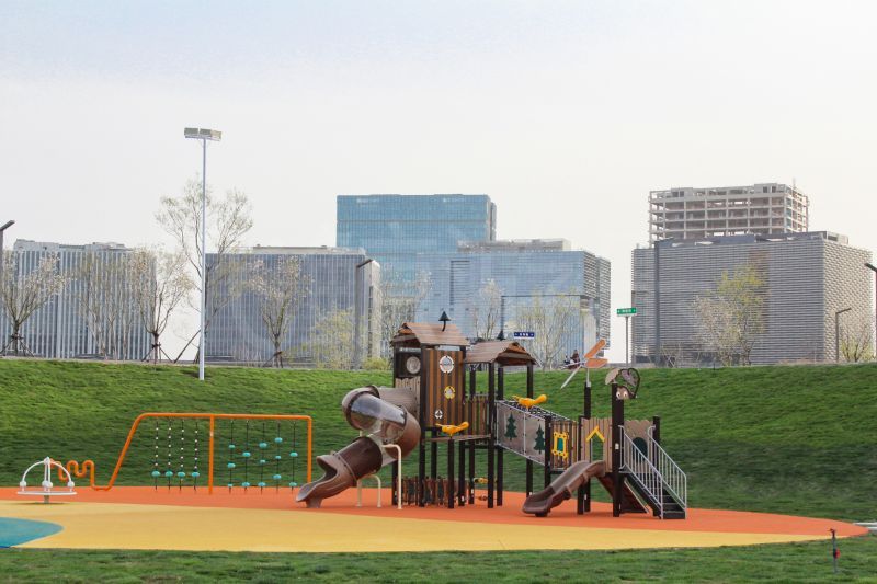 满眼绿意感受到春天气息,石径通向乐园快乐之地,树屋滑梯与游乐设备散落在绿地中央,充满自然元素树屋滑梯玩乐多样,多种滑梯与山西爬网组合,让儿童感受攀爬和滑落的乐趣。绳网让玩乐多一份挑战与探索,益智小件让可爱脑袋活力运转。 乐园里散布多种游乐设备。环形山西秋千针对不同年龄段人员设置不同类型座椅,兼顾安全与乐趣。荡漾的秋千荡起儿时美好回忆,与孩子一起感受童年快乐。喂~声音在管道里奇妙传送,春日里秘密在悄悄传递。顺着绳网向上攀爬,拓展运动一番,活力蓄能。摇摇车摇呀摇,好不惬意,抬眼环绕的绿意草地,好似骑乘欢快小马在草原奔跑。蜻蜓驻足、星辰散落,山西跷跷板起落之间,与自然亲密接触。转盘转动,体验旋转奇妙感觉紧握转杆,旋转不止,世界紧随你我转动。一步一花,平衡感在步步提升,花开朵朵通向美好远方。乐园一旁超大白色梦幻沙池,触感细腻,激发儿童创造力,释放活力。 休闲座椅休憩一番,看着玩闹孩子们,感受希望与活力。匆忙的大人们也会停下脚步,来乐园里重拾起童真的快乐。宽阔场地肆意玩乐,春光无限,玩乐无限。春意款款,岁月缓缓,留下匆匆脚步来绿意乐园感受春日快乐吧。