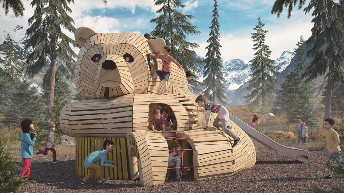 标签:定制滑梯系列,非标定制滑梯——木质棕熊主题,